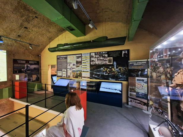 A detailed description of the landings on D-Day at H-Hour are presented in a special audio-visual room where the visitor have the unique opportunity to experience the landings as they took place and evolved including the Axis counter-attacks while listening to a commentary of the battle and hearing its sounds. Extensive use of original archive film is used throughout.